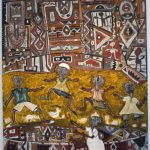 Born in West Africa’s most progressive capital city, Dakar, Senegal, glass-painting artist Ibrahima Ndoye has combined modernism and traditionalism to create a style unique to himself. Ibrahima, commonly known as “Ibou,” grew up as the oldest child of a family of four boys in the suburbs of Dakar. Ibou’s mother made her living as a dressmaker while his grandmother worked as a tie-dye artist. Regularly surrounded by colorful African textiles and fabrics, it is not surprising that Ibou says he “socialized with art and cohabited with colors” from a very young age.